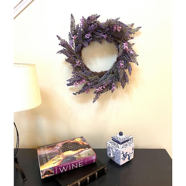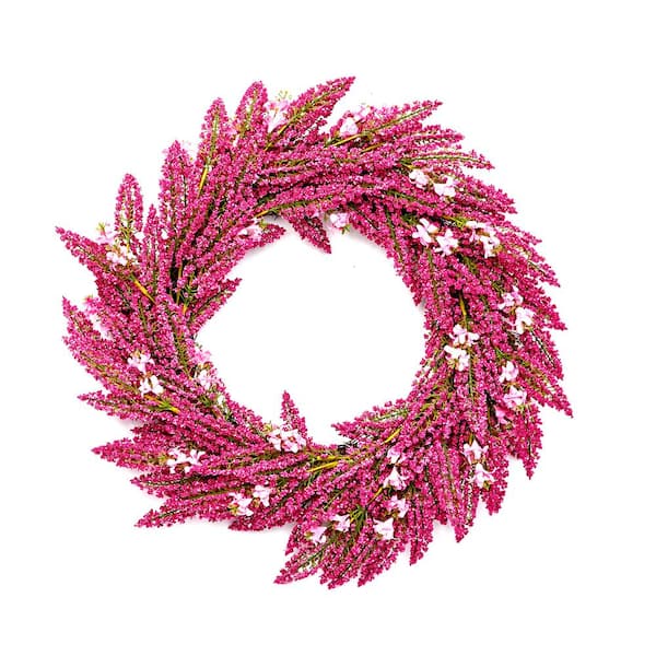 22 in. Artificial Heather Wreath with Pink Flowers on Natural Twig Base