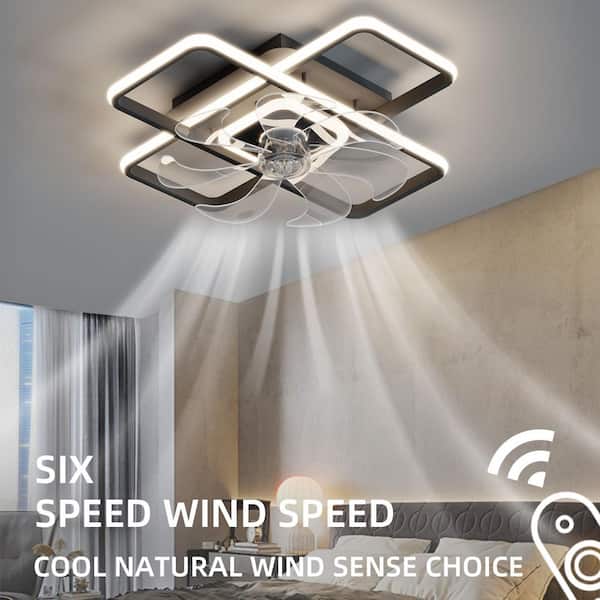 22 in. LED Indoor Black Smart Ceiling Fan with Lights and Remote, Flush Mount Low Profile Dimmable Ceiling Fan Light