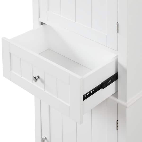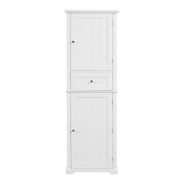 22 in. W x 11 in. D x 67.7 in. H White Linen Cabinet with Drawer and Adjustable Shelf