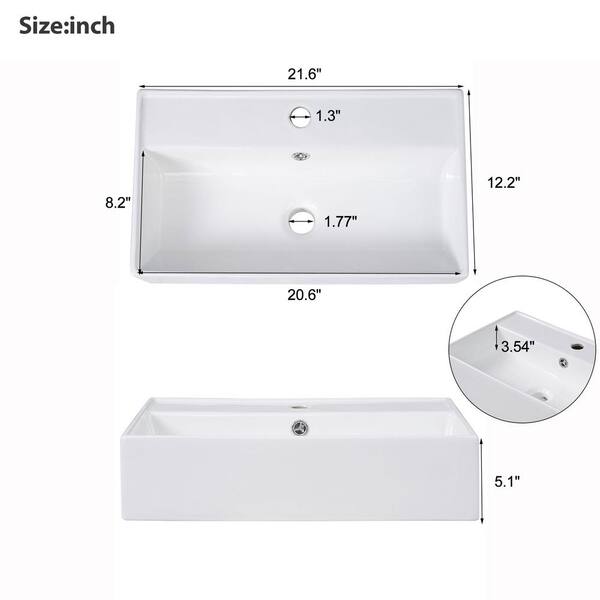 22 in. W x 12 in. D x 26 in. H Floating Bath Vanity in White with White Ceramic Top