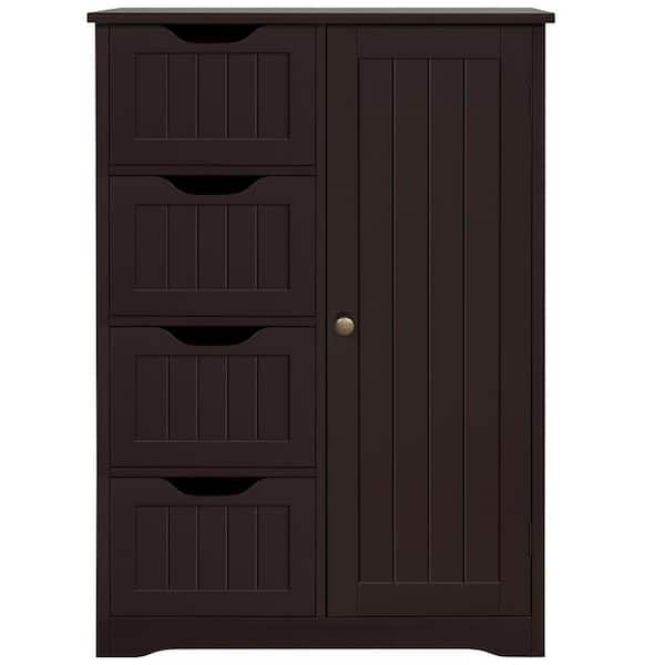 22 in. W x 12 in. D x 32.5 in. H Brown Bathroom Linen Cabinet Floor Storage Cabinet with 1 Cupboard and 4 Drawers