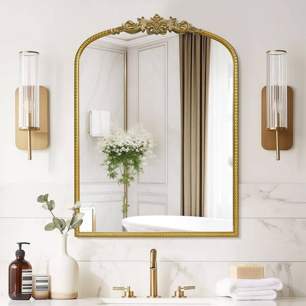 22 in. W x 30 in. H Crown Arch Iron Framed Wall Bathroom Vanity Mirror