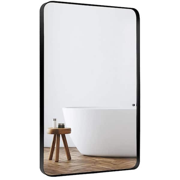 22 in. W x 30 in. H Rectangular Framed Wall Bathroom Vanity Mirror in Black Rounded Corner Vertical/Horizontal Mirror