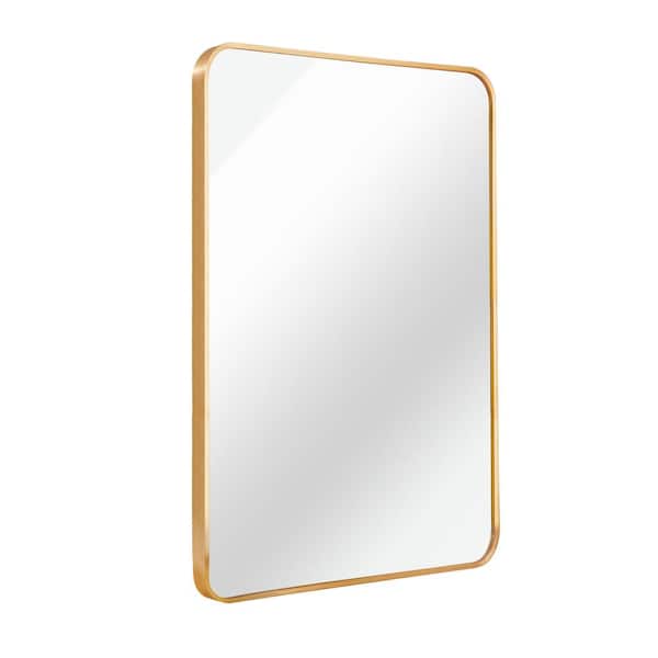 22 in. W x 30 in. H Rectangular Framed Wall Mounted Bathroom Vanity Mirror in Gold