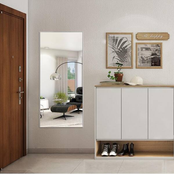 22 in. W x 47 in. H Small Rectangular Steel Framed Wall Bathroom Vanity Mirror in Sliver