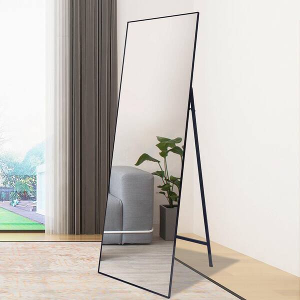 22 in. W x 65 in. H Black Rectangle Full Length Mirror, Aluminum Alloy Frame Floor Mirror