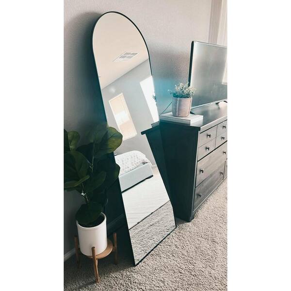 22 in. W x 65 in. H Large Arched Framed Full-Length Floor Mirror Wall Bathroom Vanity Mirror in Black