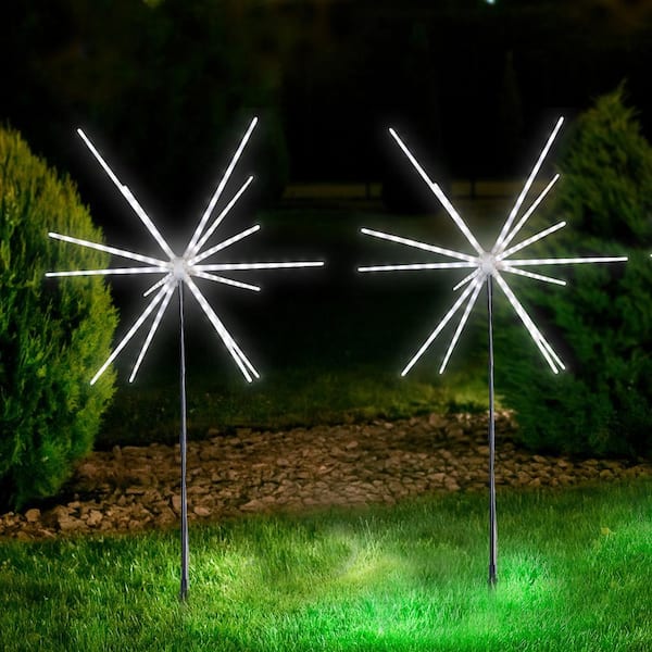 22 in. White Sparkler LED Garden Light with Hanging Hooks Plus Ground Stakes Plus Remote Control