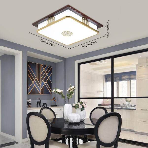 22 in. White and Brown Modern Flush Mount Dimmable LED Ceiling Light with Integrated LED Light Source and Acrylic Shade
