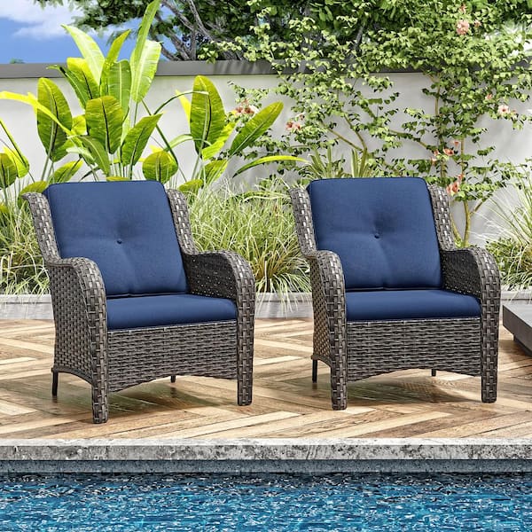 22 in. x 24 in. 2-Piece Outdoor Patio Replacement Cushion Outdoor Lounge Chair Cushion in Blue