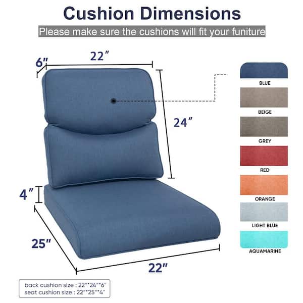 22 in. x 25 in. 10-Piece Deep Seating Outdoor Lounge Chair Replacement Cushion and Back Pillow in Blue