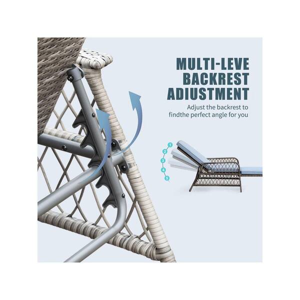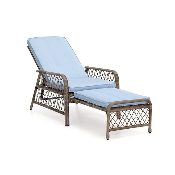 23.5 in. Outdoor Lounge Chair With Cushion Can Retractable Foot Stepping Steel Frame Material Willow Beef Vine Blue
