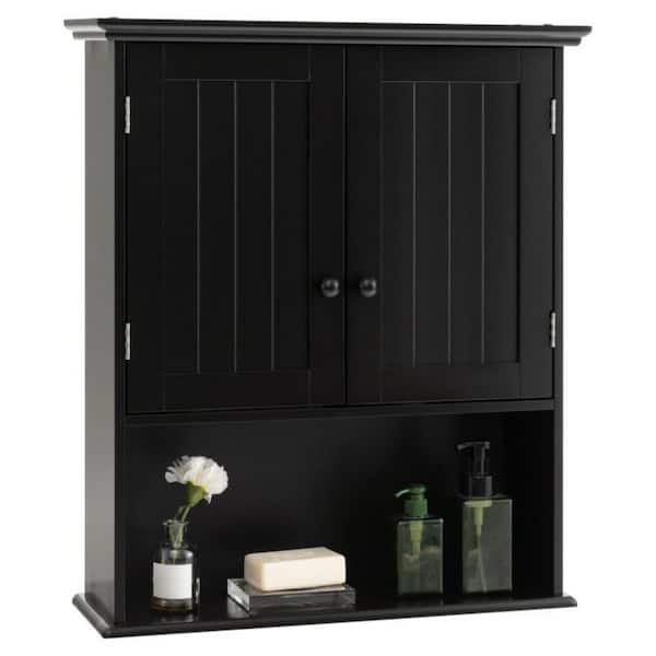 23.5 in. W x 8 in. D x 28 in. H 2-Door Bathroom Storage Wall Cabinet in Black