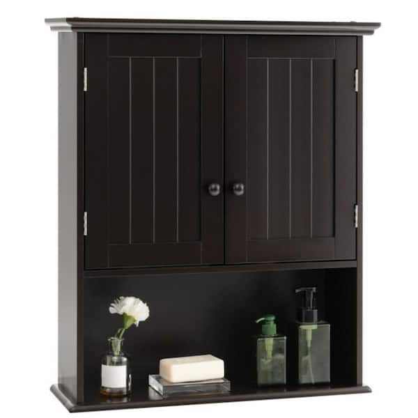 23.5 in. W x 8 in. D x 28 in. H 2-Door Bathroom Storage Wall Cabinet in Espresso