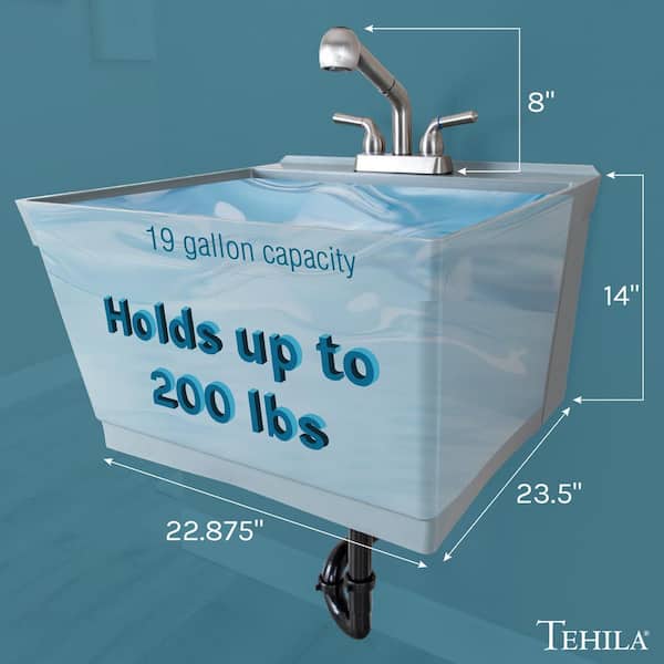 23.5 in. x 22.88 in. Grey Thermoplastic Wall Mounted Utility Sink with Stainless Finish Pull-out Sprayer Faucet