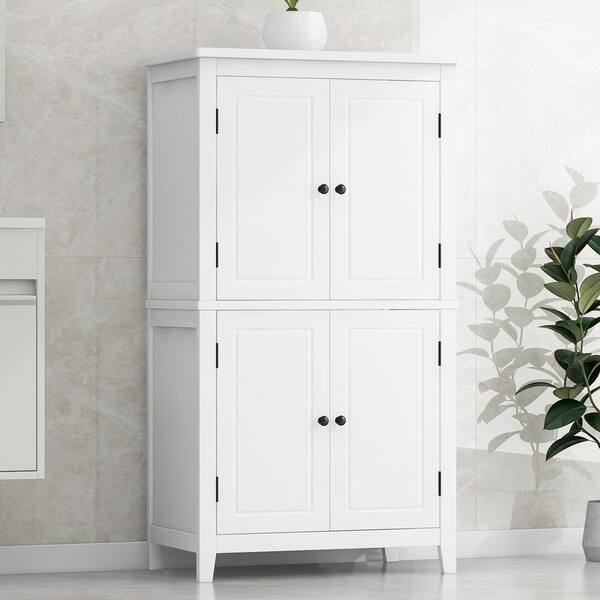 23.6 in. W x 11.8 in. D x 43.3 in. H White Wood Elegant Bathroom Floor Storage Linen Cabinet with Adjustable Shelf