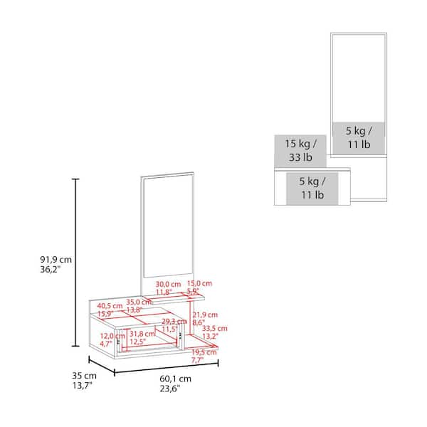 23.6 in. W x 13.7 in. D White Melamine and Particle Board Floating Decorative Wall Shelf with Drawer and Mirror