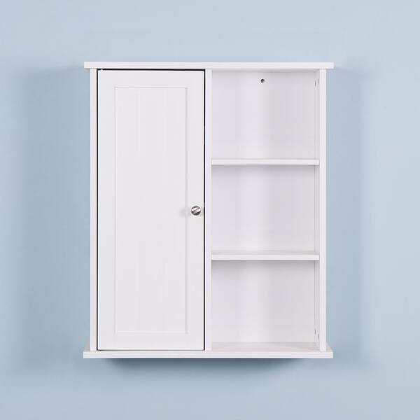 23.6 in. W x 28 in. H Rectangular White Wood Wall Mount Recessed Medicine Cabinet with Door and Adjustable Shelf