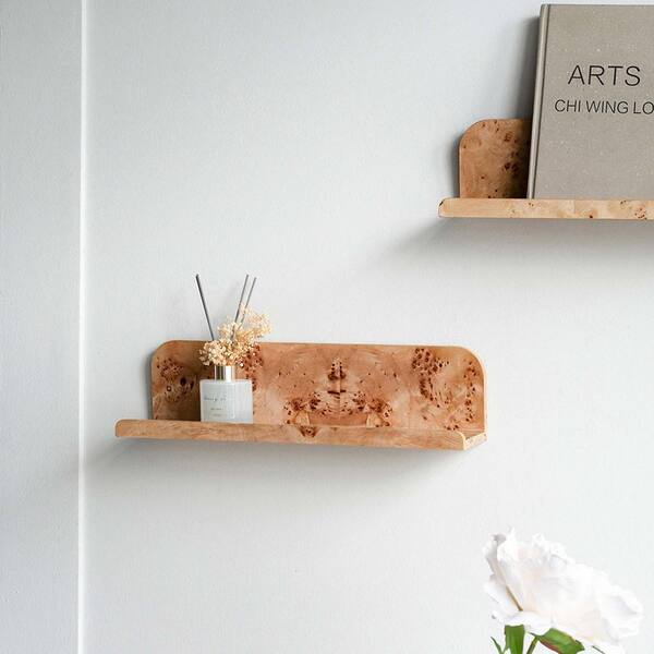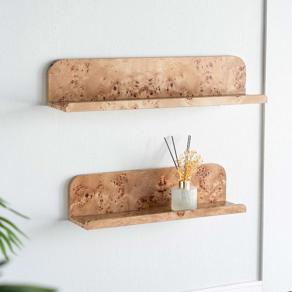 23.6 in. W x 4.7 in. D Floating Wall Mounted Shelves, Burl Wood Vintage Decorative Wall Shelves, Brown