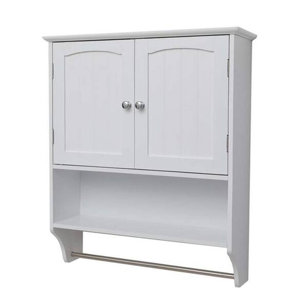 23.6 in. W x 7.9 in. D x 27.6 in. H White Wood Wall Mounted Bathroom Storage Wall Cabinet with Shelves and Towels Bar