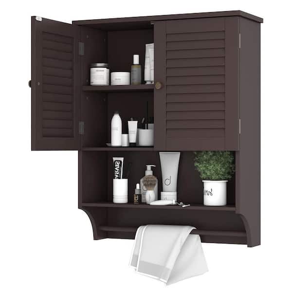 23.6 in. W x 8.9 in. D x 29.3 in. H Espresso Bathroom Over The Toilet Cabinet with Adjustable Shelves and Towels Bar