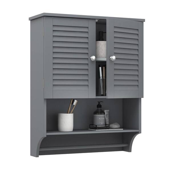 23.6 in. W x 8.9 in. D x 29.3 in. H Gray Bathroom Over The Toilet Wall Cabinet with Adjustable Shelves and Towels Bar