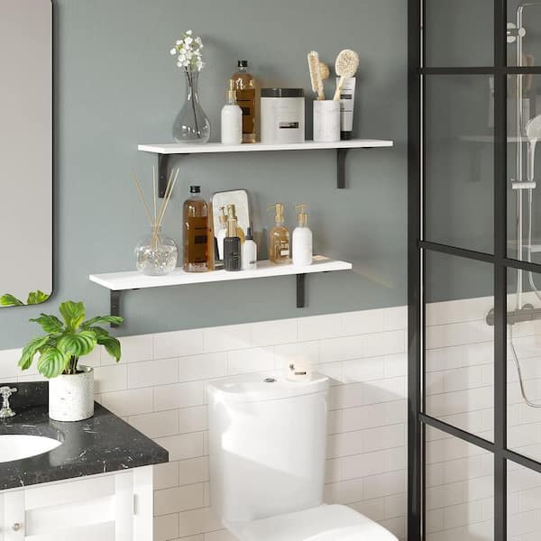 23.6 in. W x 8 in. D White Floating Shelf Decorative Wall Shelf Set of 2