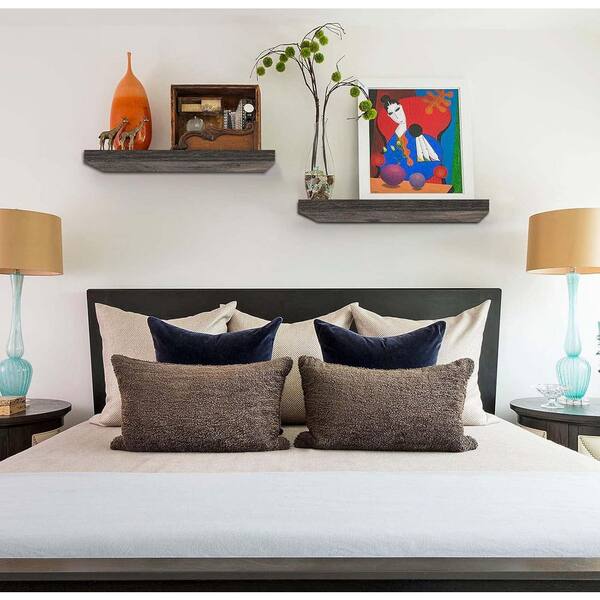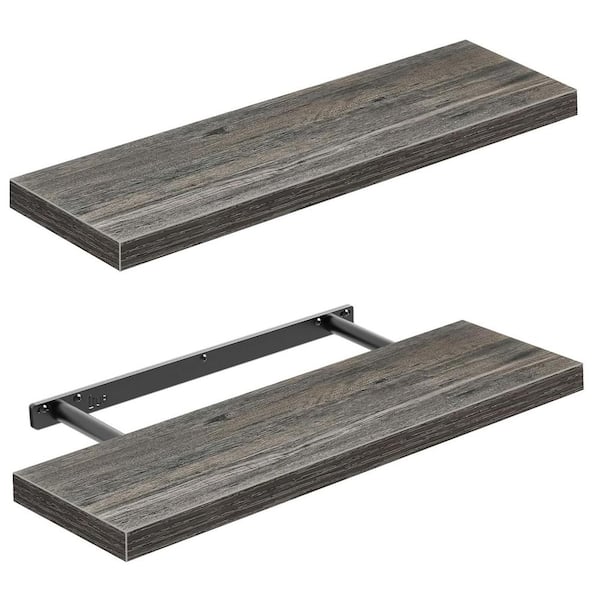 23.6 in. W x 9.3 in. D Gray Wood Bathroom Shelves Long Floating Shelf for Wall, Decorative Wall Shelf (Set of 2)