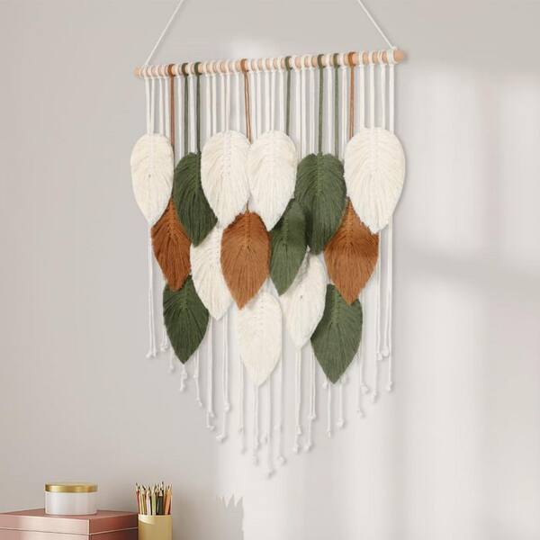 23.6 in. x 29.5 in. Multi-Colored Boho Macrame Leaf Wall Hanging-Cotton Woven Tapestry Decor