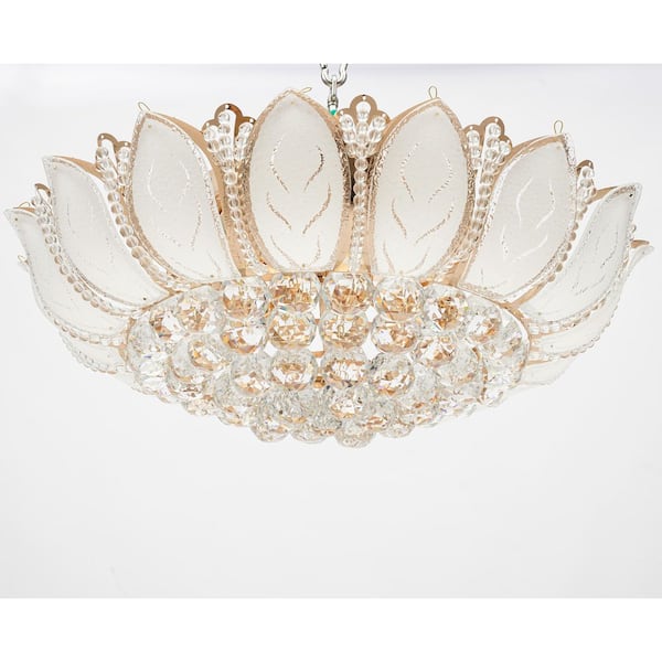 23.62 in. 7-Light Modern Gold Lotus Flower Shape Crystal Flush Mount Ceiling Lamp and No Bulbs Included