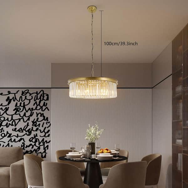 23.62 in. 8-Light Modern Crystal Round Gold Chandelier with Crystal Shade