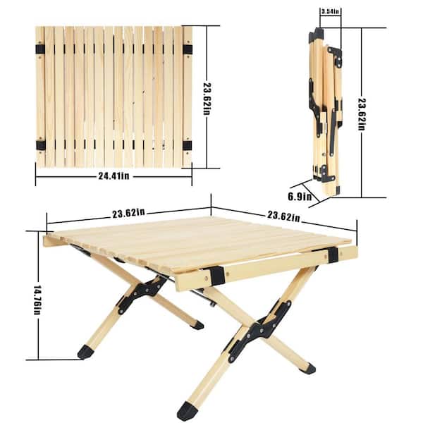 23.62 in. Outdoor Natural Wood Square Wood Beach Camping Picnic Table with X-Frame Design, Compact and Lightweight