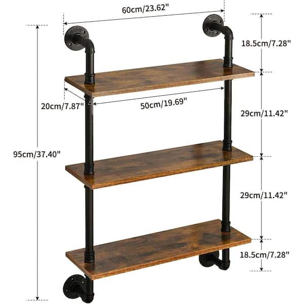 23.62 in. W x 7.87 in. D Brown Pipe Floating Shelves 3-Tiers Decorative Wall Shelf