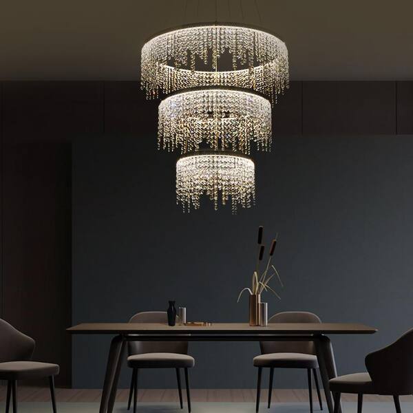 23.64 in. 3-Light Silver Integrated LED Chandelier with K9 Clear Crystal