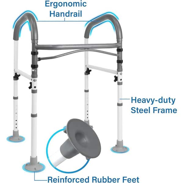23 " L Toilet Safety Rails, Foldable Ergonomic Handrail, Heavy-Duty Steel Frame, Rubber Feet, FSA/HSA For Senior in Gray