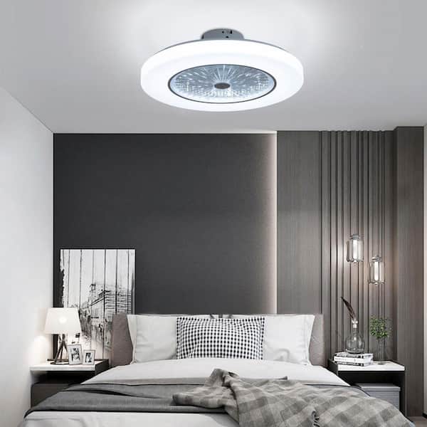 23 in. Indoor White Modern Round Semi Flush Mount Integrated LED Ceiling Fan with Remote Control for Bedroom Living Room