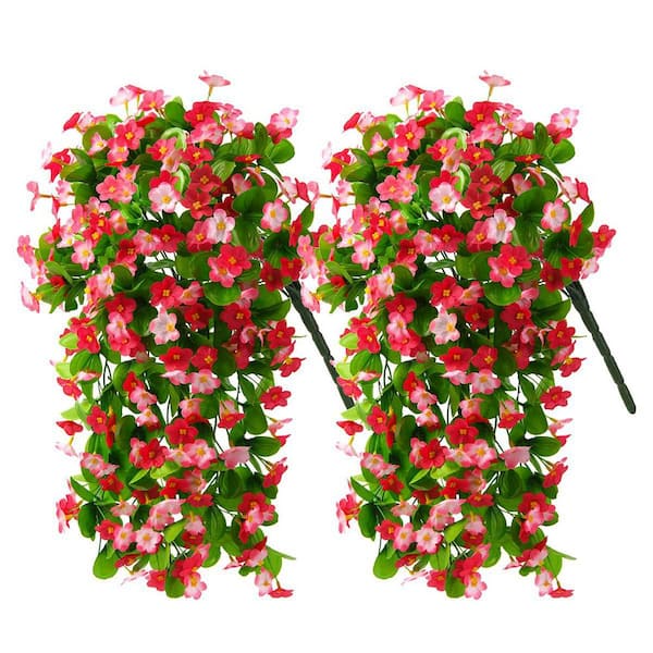 23 in. Pink Artificial Hanging Flowers, Fake Plant Hanging Multicolor Daisy Flower Bouquet, 2-piece