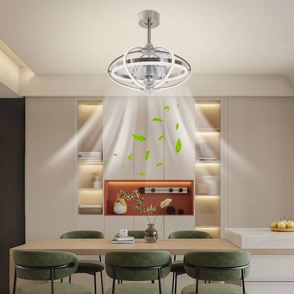 23 in. Silver Indoor Creative Design Integrated LED Cage Ceiling Fan with Remote Control