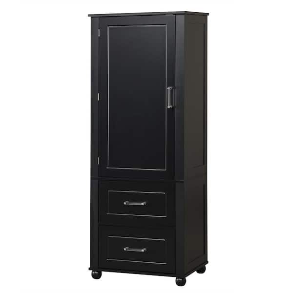 23 in W x 15.9in D x 61.4 in H MDF Board Ready to Assemble Floor Bathroom Storage Cabinet in Black with Adjustable Shelf