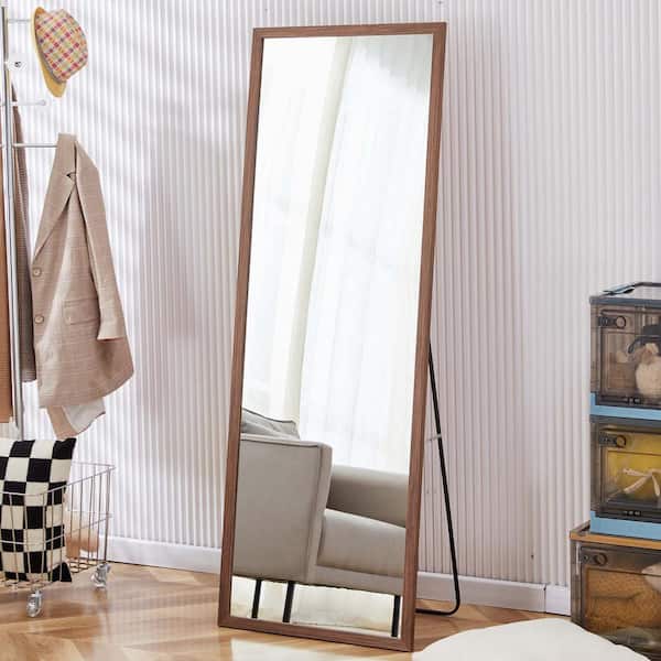 23 in. W x 65 in. H Rectangle Wood Framed Brown Mirror for Living Room, Bedroom