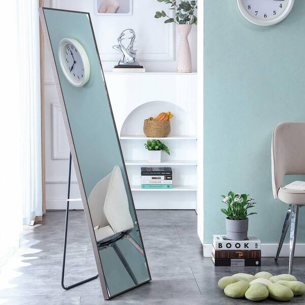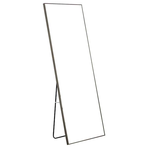 23 in. W x 65 in. H Rectangular Gray Wood Modern Framed Full-length Mirror Decorative Mirror Floor Mounted