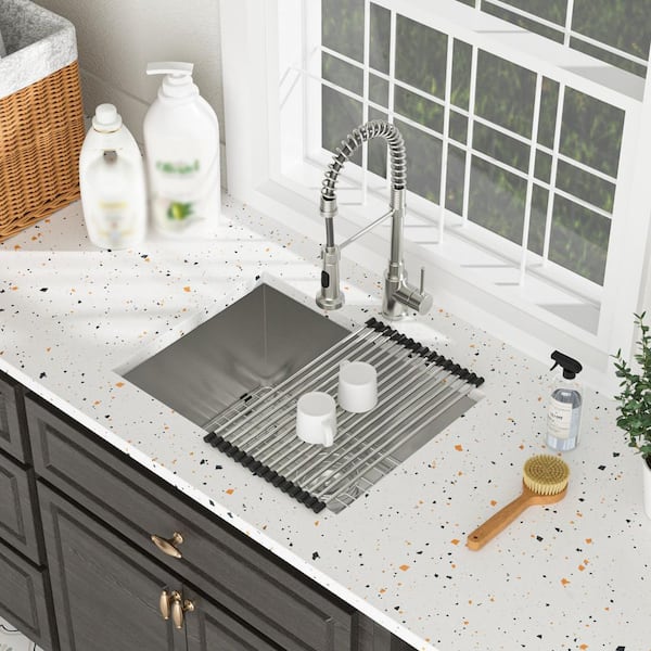 23 in. x 18 in. Undermount Laundry/Utility Sink in Brushed Nickel with Bottom Grid