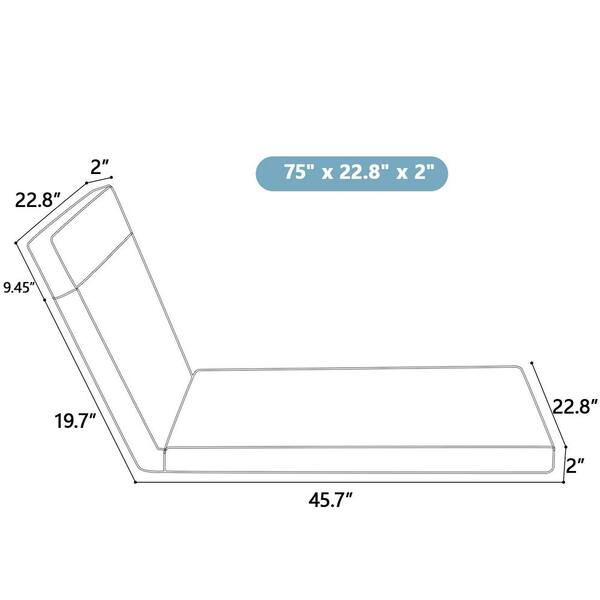 23 x 20 Outdoor Chaise Lounge Chair Cushion 2-PC with Ties and Back, for Patio Lawn Pool Beach, Waterproof, Black Leaf