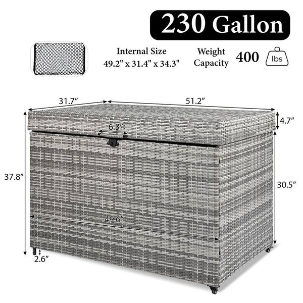 230 gal. Gray Wicker Deck Box with Lockable Lid, Wheels and Side Handle, Outdoor Storage Box for Poolside