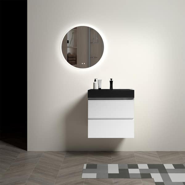 24.0 in. W x 18.1 in. D x 25.2 in. H Modern Floating Bathroom Vanity with 2 Drawers and Black Quartz Sand Sink in White