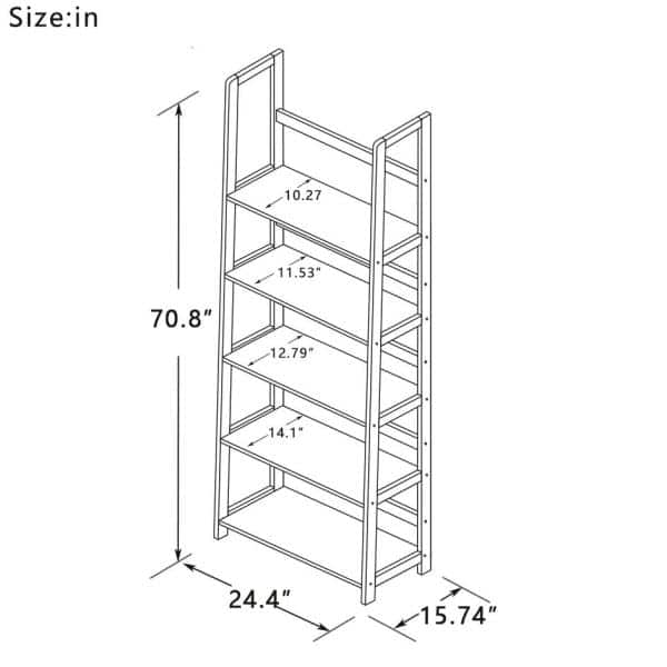 24.04 in. x 15.74 in. x 70.8 in. White 5-Shelf MDF Standard Bookcase