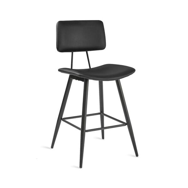 24.5 in. H Black Metal Counter Height Bar Stools Curved Seat Faux Leather Barstools Set of 4