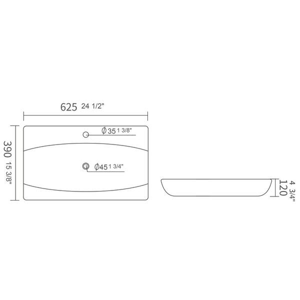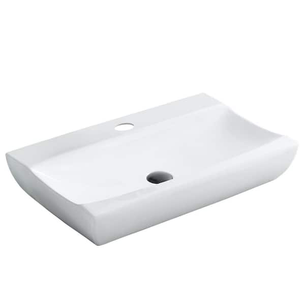 24.5 in. x 15.38 in. Bathroom White Ceramic Rectangle Vessel Sink