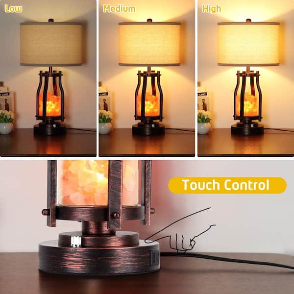 24.6 in. USB Table Lamp with White Fabric Shade, Included Bulb