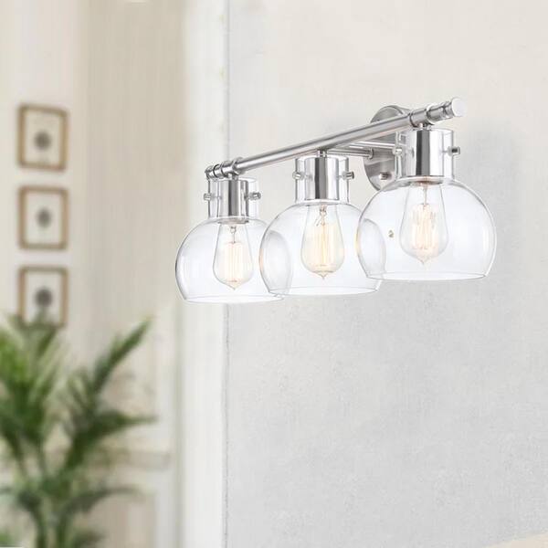 24.61 in. W 3-Light Silver Vanity Light with Bowl Clear Glass Shade